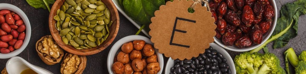 Germeni de porumb, germeni de grau, ulei de masline, ulei de germeni de porumb, nuci, alune, migdale, arahide, brocoli, spanac si linte, kiwi, struguri, caise.